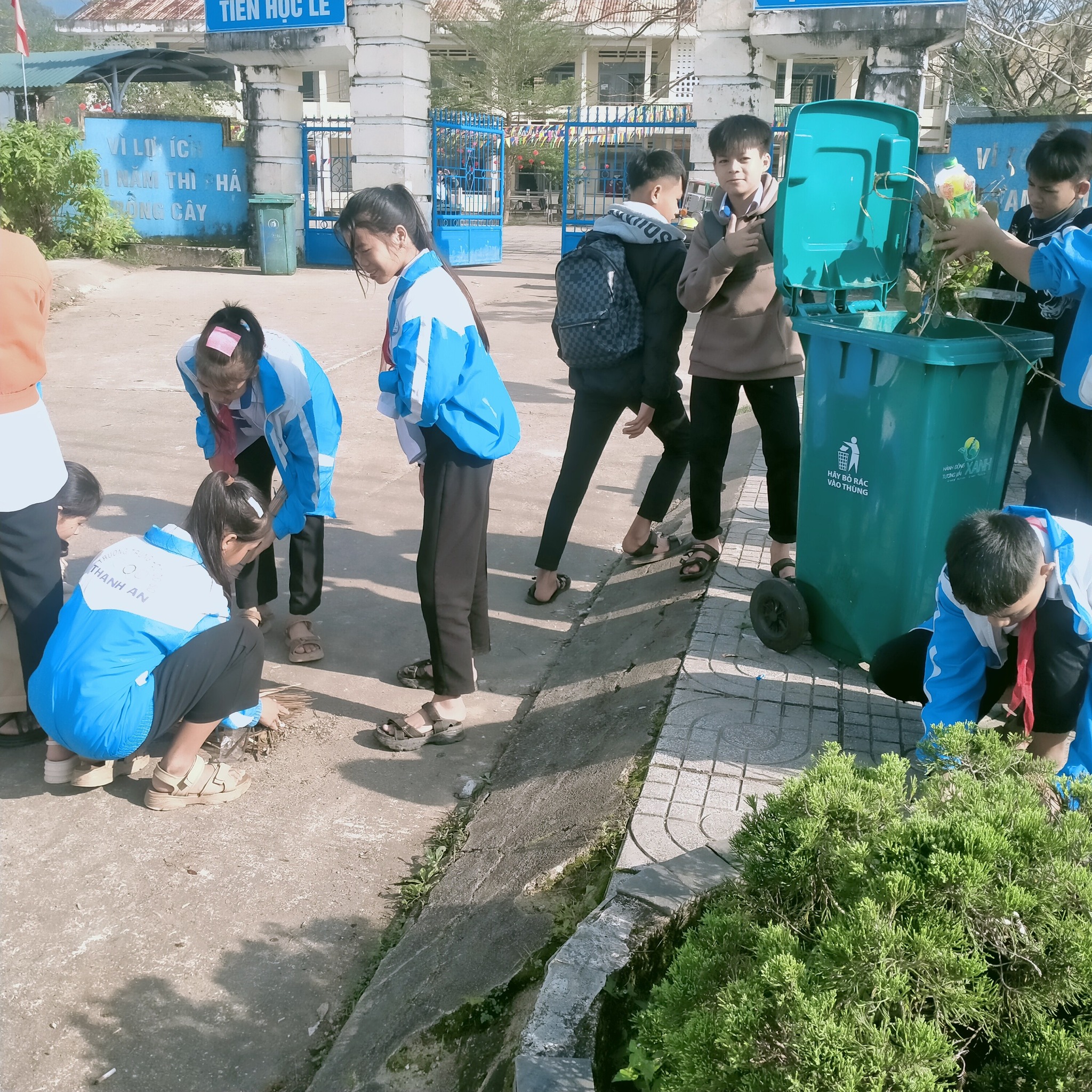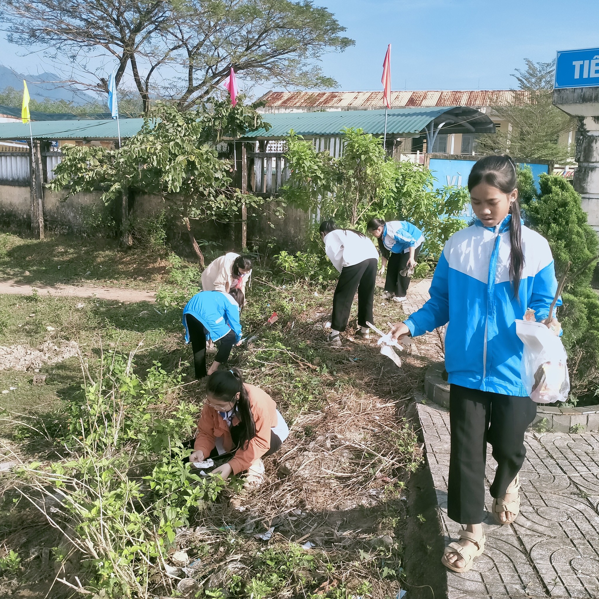 - Dọn dẹp vệ sinh: Các em học sinh đã tổ chức dọn dẹp khuôn viên trường học và các khu vực lân cận, thu gom rác thải nhựa và rác thải khác.