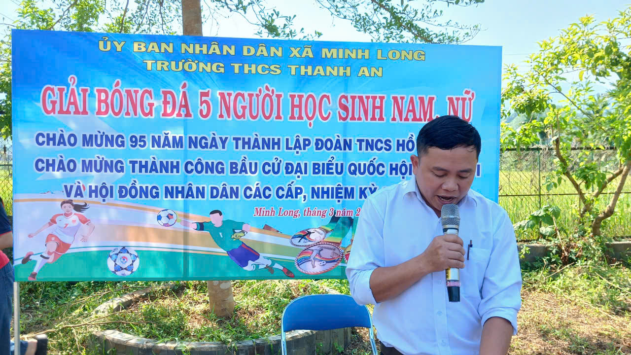 Nhằm chào mừng 95 năm Ngày thành lập Đoàn TNCS Hồ Chí Minh và thành công của cuộc bầu cử đại biểu Quốc hội, HĐND các cấp, Trường THCS Thanh An (xã Minh Long) đã tổ chức Giải bóng đá 5 người dành cho học sinh nam, nữ trong không khí sôi nổi, hào hứng.